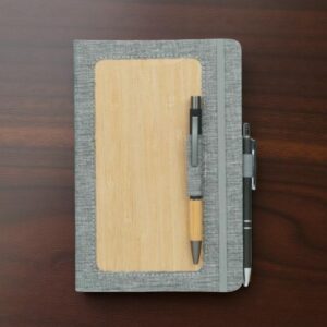 Made with recycled RPET PU and bamboo, this premium notebook offers 192 writing sheets and dual pen slots — perfect for eco-conscious professionals.