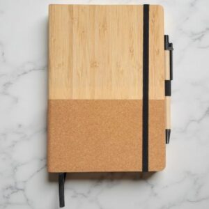 A stylish blend of bamboo and cork materials. The hardbound cover, elastic band, and ribbon bookmark make it a durable, eco-luxury option.