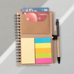 Smartly designed with a built-in mobile stand, sticky notes, and colored strips — ideal for professionals seeking organization with sustainability.